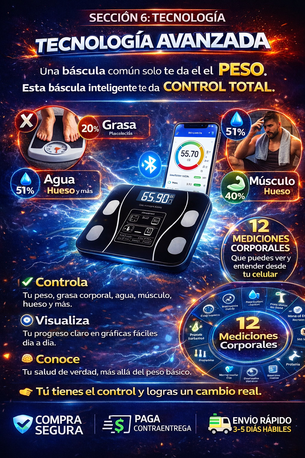La báscula no promete milagros, pero sí algo muy poderoso: control y motivación diaria. Al ver tu progreso real, es mucho más fácil mantener hábitos y notar cambios con el tiempo.