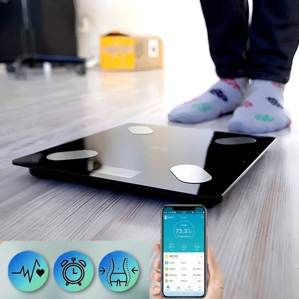 Esta conveniente y funcional báscula inteligente es tu mejor opción para monitorear tu salud, llevando registro de más de 10 métricas corporales como lo son: peso, grasa corporal, músculo, proteína, grado de grasa visceral, tipo de cuerpo, edad del cuerpo, humedad, FFM, índice de masa corporal, metabolismo basal. Lo bueno de esto es que podrás tener acceso y control de todos estos en cualquier momento desde tu celular, simplemente descargas la aplicación “scale up” y conectas tu báscula por bluetooth a tu celular dejándola sincronizada directamente con la app.